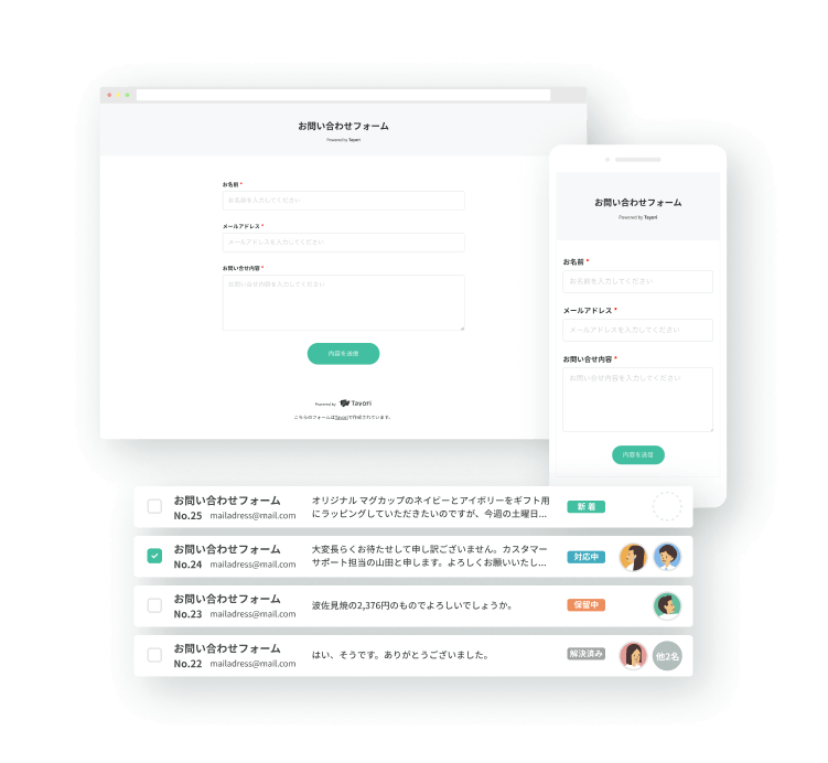 受信箱での一元管理で対応漏れを削減。カスタマーサポートの問い合わせフォーム、申込フォーム、総務・情シスの社内問い合わせフォームなど社内外の問い合わせ対応に。